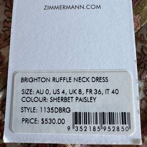 NWT ZIMMERMAN Brighton Ruffle-Neck Dress sherbet 4