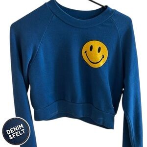 Aviator Nation Women’s Blue Smiley Face Cropped Sweatshirt/Pullover | EUC!!😃😃