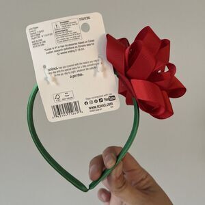 Scunci By Conair Headband Christmas Accessory Green Band Red Bow Girls Hair