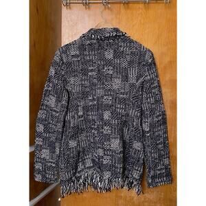 M. M. Lafleur Porter Jacket Interweave Black And White Tweed Fringe Sz L Japan