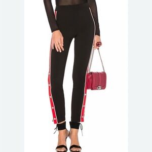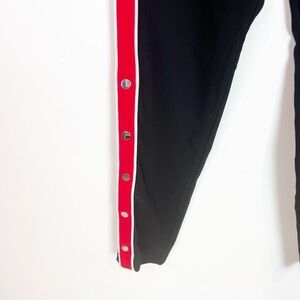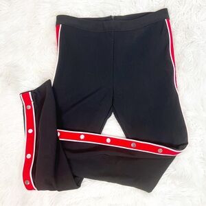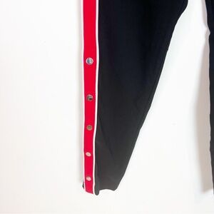 Lovers + friends black on track snap side track legging skinny pants with red stripe down sides. Button detail at hems.
