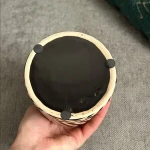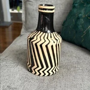 Stylish black and cream vase with a zigzag pattern. Perfect for modern decor.