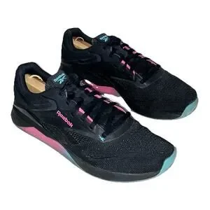 Reebok Mens Size 11.5 Nano X4 Sneakers Black Cyan Pink Gum