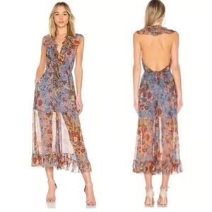 Zimmermann Blue Floral Lovelorn Fringe Halter jumpsuit Sz Small