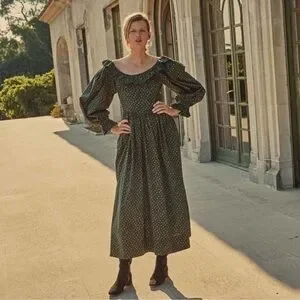 Inspired by a classic french garden dress, the Zarina dress is a floaty dream in 100% organic cotton poplin. Cascading to the ankle, the body is cinched close with a hidden zipper and adjusted by a self-tie attached at the shaped drop waist.