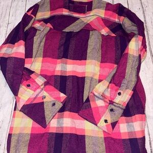 We the Free so long summer plaid flannel oversized button down pink/purple S