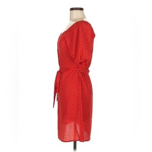 Monteau LA Women's Medium Red Polka Dot Puff Sleeve Faux Button Midi Dress w Tie