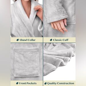 HiChiolife Light Gray Plush Fleece Bathrobe Cozy Long Robe Women Size Large New