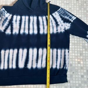 Madewell Navy White Tie-dye Hooded Cotton Sweatshirt. Pocket in middle. Ragland sleeves. V Neck stitching under collar.