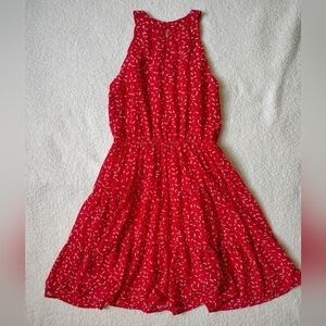 *Like New* Monteau Women's Medium Red Ruffle Tiered Sleeveless Halter Midi Dress
