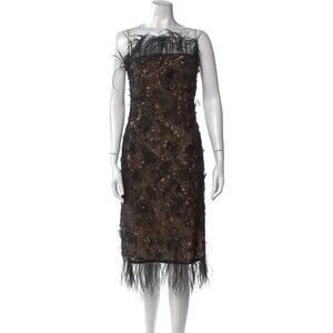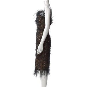 Oscar de la Renta F/W 2004 Silk Ostrich Feather Beaded Embellished Dress Sz 10