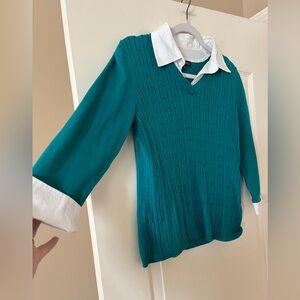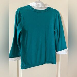 Notations Teal V-Neck Sweater with White Collar Womens size medium