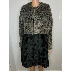 Fever colorblock Leopard Faux Fur Coat size M NWT