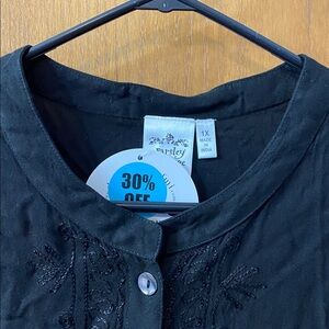 “5/$20” Parsley & Sage black button up sleeveless blouse size 1X