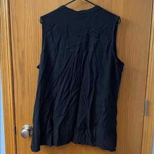 Brand new! Soft and comfortable. Sleeveless black button up blouse. Buttons are iridescent and beautiful, they feel like they are made from shells.