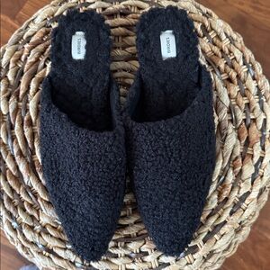Sherpa slip on black mules in gently used condition