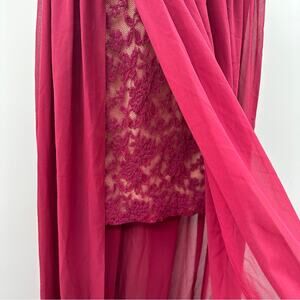 Lulus Make Way For Wonderful Berry Red Lace Sleeveless Maxi Dress Size S