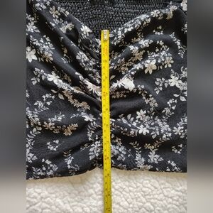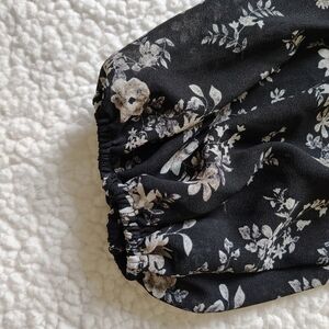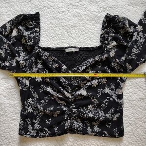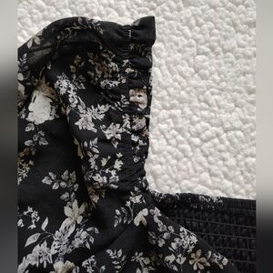 *5 for $25* Lush Med Black White Floral Blouse Sheer Sleeves Ruched Smocked Top