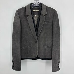 J Brand Zooey Linen Leather Trim Blazer Slate Gray Black Size 4