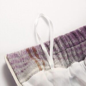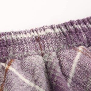Womens Long Pure PurpleElastic Waist A-Line Pleated Tartan Long Plaid Wool Skirt