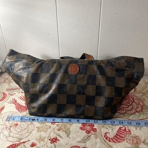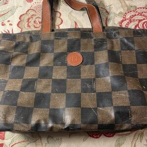 This Vintagethere are numerous wear , no rips, but visually very distressed. Lightweight and the inside in terrific condition compared to outside and age! Fendi was very lived!! Stylish and versatile checkered tote bag in brown and black. Perfect for everyday use with a spacious interior.