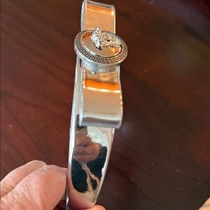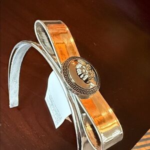 Chic Versace hairband with a metallic silver design. Adds luxury to any look. New
