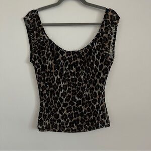 Express Leopard Print Ruched Scoop Neck Cap Sleeve Top Y2K-Women’s Size Small