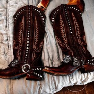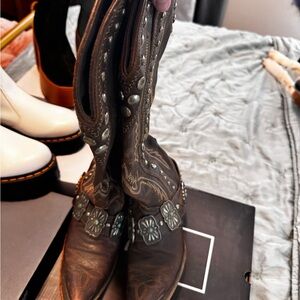 Step out in style with Lane Boots' Cognac Tall Cowgirl Boots. Featuring intricate silver accents, these boots are perfect for any occasion.
