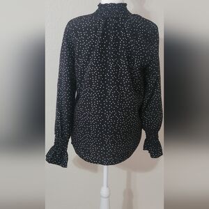 Black blouse with white hearts