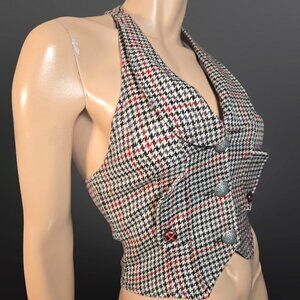 Y2K houndstooth fitted waistcoat, tag size S, runs small, fits size XS best