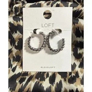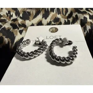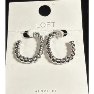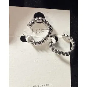 Ann Taylor LOFT earrings, twist hoop earrings, open hoop stud earrings, gold tone earrings, oval hoop earrings, minimalist fashion earrings, LOFT jewelry NWT