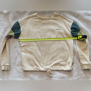 Elevate your casual wardrobe with this cream crewneck sweater. Featuring stylish multicolor stripes on the sleeves, it's perfect for any relaxed outing.