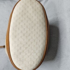 Chic Gucci shoulder bag in tan and cream. Features a stylish bucket design. Perfect for versatile wear.