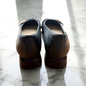 Elegant navy loafers with stylish buckle accents. Perfect for versatile wear.