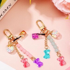 Sleek plush pink quilting on the outside with multi colored resin gummy bear accents, translucent to catch the light, comes with a free matching gummy bear charm!