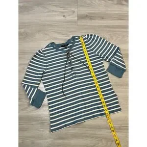 Keywords: Lauren Ralph Lauren, henley, thermal, striped, long sleeve, lace up, nautical, casual, ribbed, women's top, pullover, basic