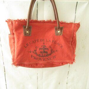 Myra Bag Le Cafe La Place Provence Graphic Red Canvas Leather Tote
