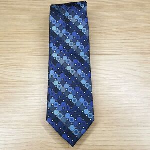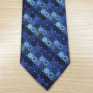 PERRY ELLIS Mens Neck Tie Navy Blue Geometric Circle Micro Dot Modern Classic
