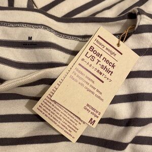 Muji Beiat neck Striped Long Sleeve Shirt. Heavy weight . Size M