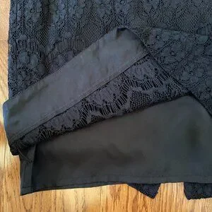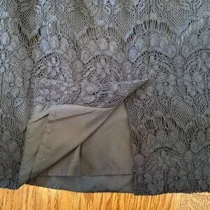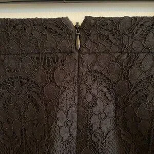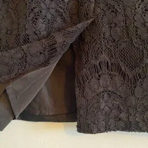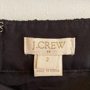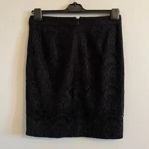 J. Crew above the knee skirt. Fitted pencil silhouette. Hidden zipper and hook closure in back. Fully lined with black floral eyelet lace overlay. Trendy, dainty black floral lace. High quality. Short slit in back. No stretch. Fabric is 60% cotton, 20% nylon, 14% viscose with polyester lining. Office, party, cocktail, holidays, Christmas, preppy, classic.