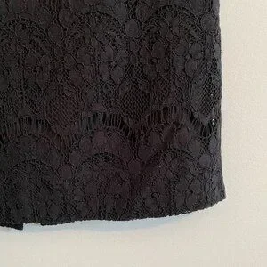 J. Crew Black Lace Floral Eyelet Above Knee Skirt Lined Preppy Holidays Cotton