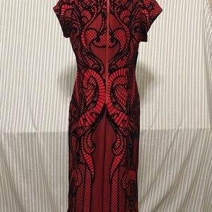 Worthington Red and Black Graphic Midi Dress