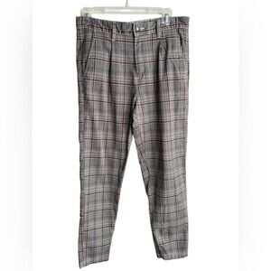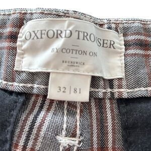 Cotton On Oxford Trouser Plaid Pleated Straight Fit Tapered Ankle Waist Size 32