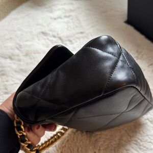 Elevate your style with this chic black quilted leather bag. Perfect for any occasion, it features a luxurious design with gold accents. A must-have accessory for fashion-forward individuals.