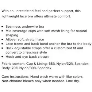 Wacoal Soft Sense Blush Lace Underwire Bra Blush Nude 34G Convertible Straps