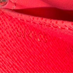 Material: Damier Ebene coated canvas exterior with a red interior lining