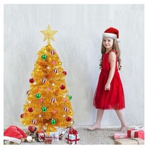 3 FT Small Artificial Gold Christmas Tree with 50 Warm White & Multicolor Lights