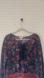 Chic floral blouse with lace-up neckline. Black base with red floral patterns. Ideal for casual wear.