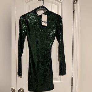 Zara Green Sequin Long Sleeve Mini Dress XS | NWT Holiday Party Night Out