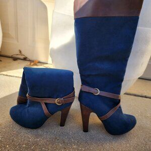 Y2K Western-Inspired Cowboy Chic Brand-New Blue Suede Women’s Knee Boots Size 9